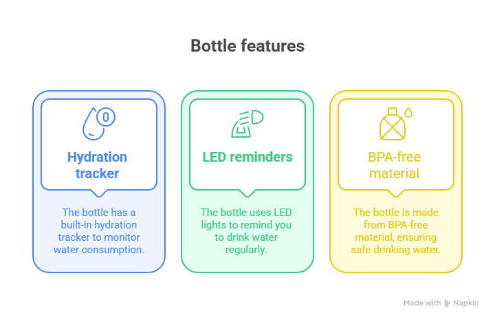 Keeping track of water intake can be challenging. Hydration Reminder Bottle tracks your water consumption and reminds you to drink throughout the day.