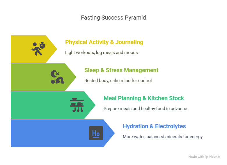 Fasting works best when your body is ready. That means getting hydrated, planning meals, dialing in sleep, and managing stress—all before you skip that first bite.