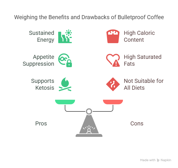 While Bulletproof Coffee may help control hunger and support ketosis, its high-calorie content can also contribute to weight gain if not accounted for within your daily caloric intake. It’s essential to consider your overall calorie consumption and weight loss goals when incorporating Bulletproof Coffee into your diet. ([drberg.com](https://www.drberg.com/blog/will-bulletproof-coffee-block-autophagy?utm_source=openai))