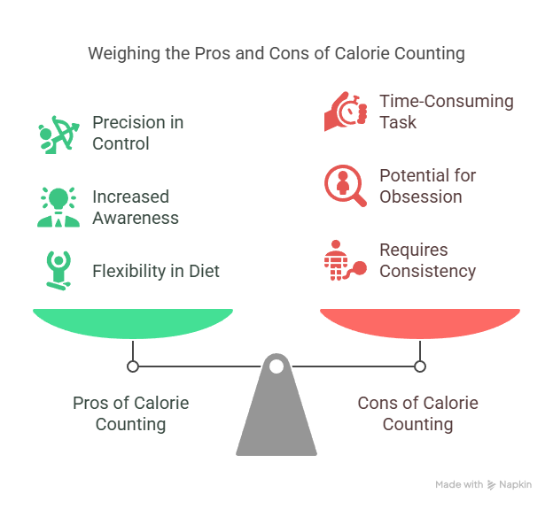 Calorie Counting requires continuous monitoring, which can be time-consuming and challenging to maintain long-term. ([medicalnewstoday.com](https://www.medicalnewstoday.com/articles/intermittent-fasting-and-traditional-calorie-counting-about-equal-for-weight-loss?utm_source=openai))