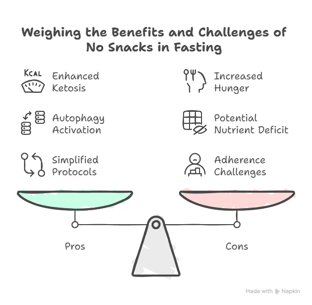 – **Ideal for Weight Loss:** For those focused on weight loss and metabolic health, abstaining from snacks during fasting periods is recommended to maintain ketosis and promote fat burning.