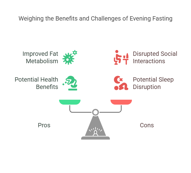 – **Evening Fasting**: Potential disruption of sleep due to late-night eating.