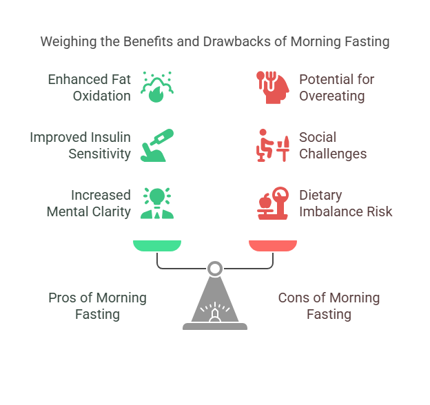 Morning Fasting may enhance fat oxidation and improve insulin sensitivity due to the body’s heightened metabolic response during the early hours. This approach aligns with the body’s natural circadian rhythms, potentially leading to more efficient energy utilization and weight management. ([onlinelibrary.wiley.com](https://onlinelibrary.wiley.com/doi/full/10.1111/nbu.12467?utm_source=openai))