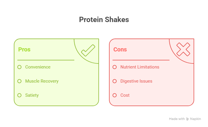 Protein shakes are ideal when you need a quick, convenient source of protein, such as post-workout recovery or as a supplement to your diet. However, they should not replace whole meals, which provide a more complete nutrient profile. ([thenutritionjunky.com](https://thenutritionjunky.com/meal-replacement-vs-protein-shake-whats-the-difference/?utm_source=openai))