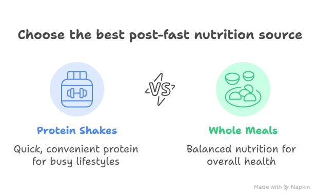 Your choice between protein shakes and whole meals after a fast depends on your individual goals, lifestyle, and nutritional needs.